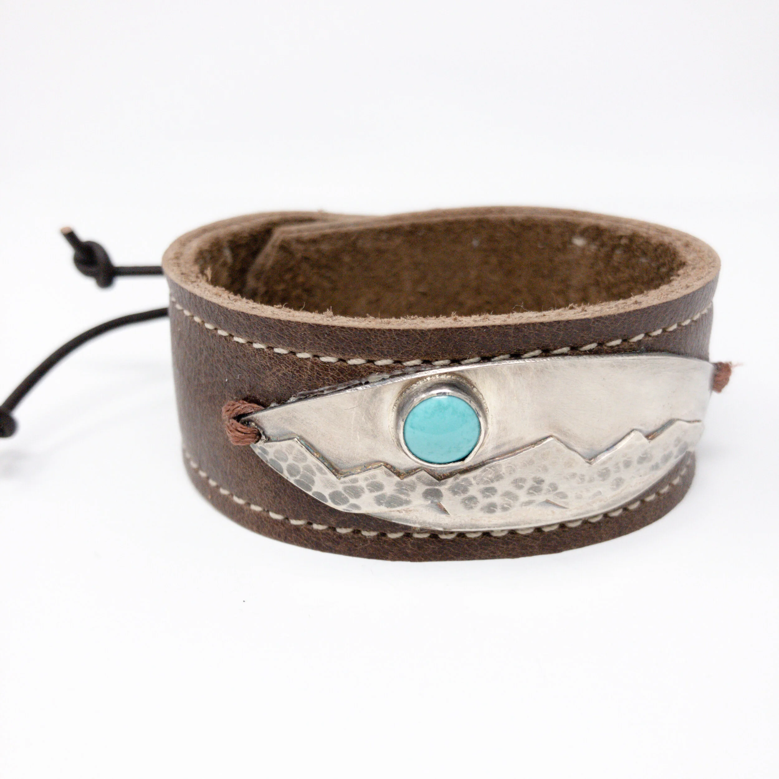 “My goal with my art is to convey a fusing of two places: Southwestern modern design and Pacific Northwest ruggedness. I have loved leather since I was young (making myself my own purses and footwear) and, when I couldn’t find any leather and mixed metal jewelry, I decided to make them myself.