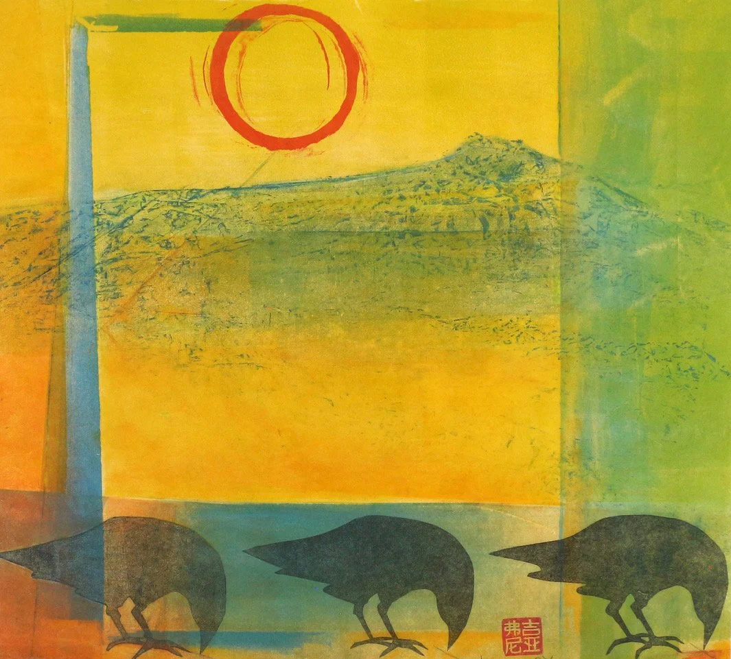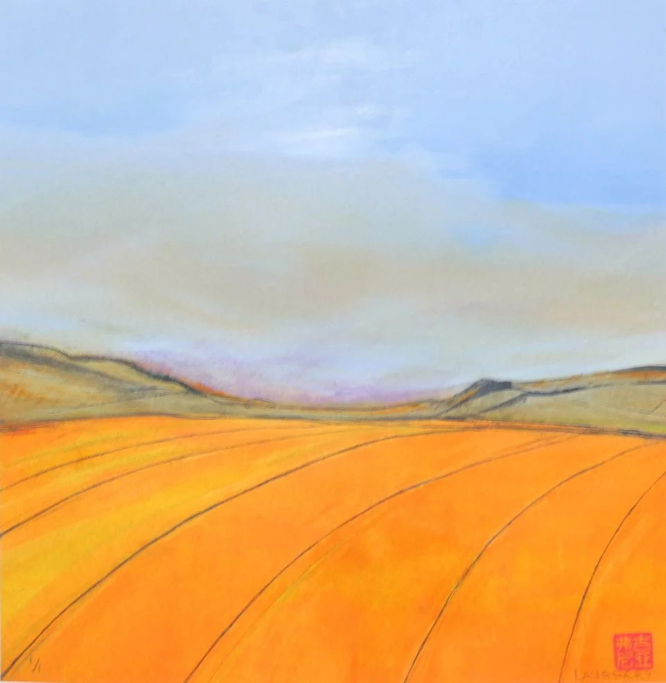 Gin Laughery is a printmaker based in the high plateau desert region of Central Oregon. She depicts landscape imagery through abstraction and subtle use of color and texture. Early life in Eastern Washington and current life in Oregon’s High Desert, both with their spare, elegant landscapes and panoramic views directly inform her work. Observation and memory contribute to her finished compositions. Laughery invites the viewer to consider geological nuance, in all its subtle yet expansive beauty as well as atmosphere, always playing its role in the characterization of the unique and power-ful region of Central Oregon.