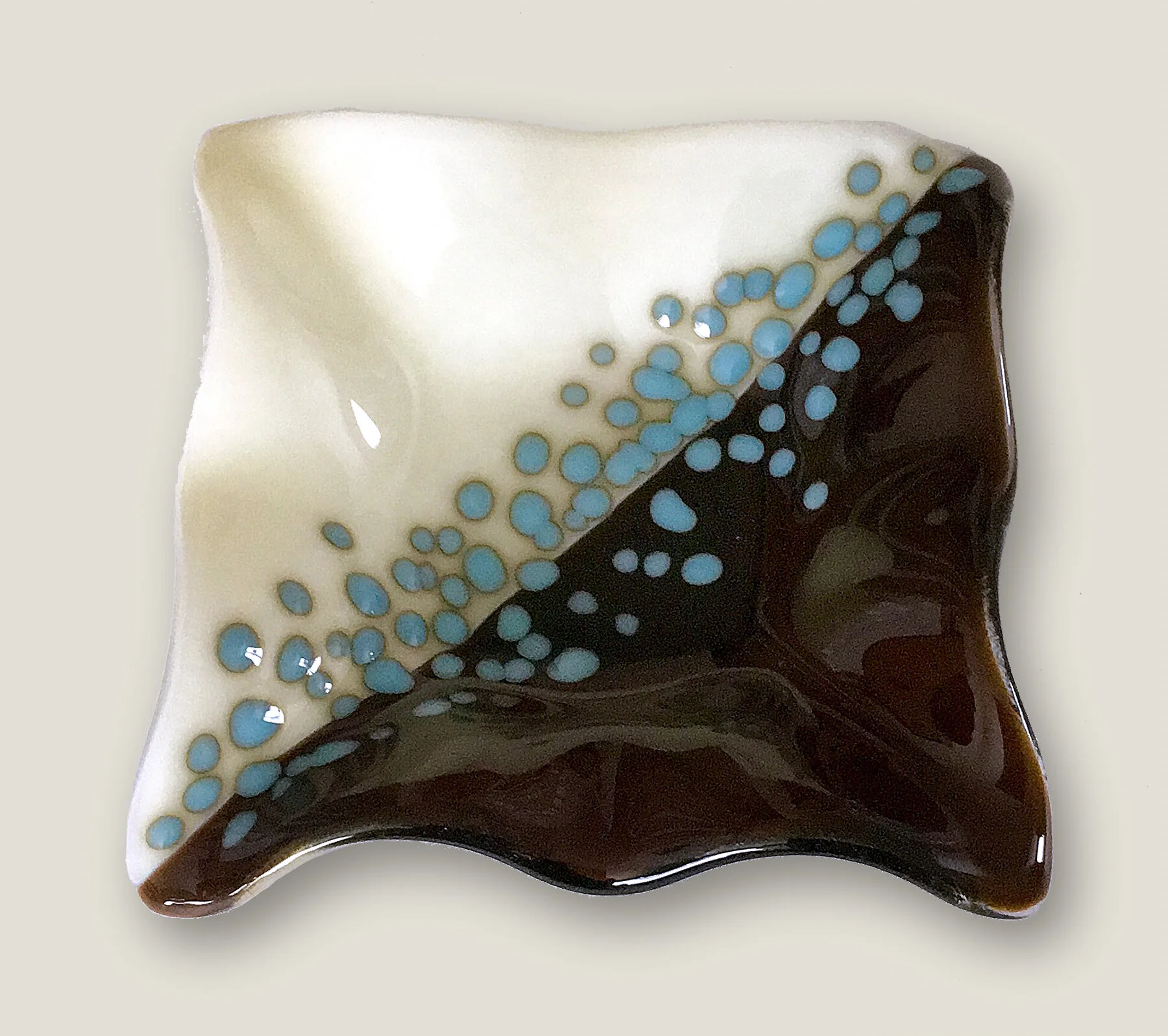 Katie began her artistic career as a ceramicist. 10 years ago she switched to working in fused glass. Katie makes plates, bowls, jewelry, and decorative works, which are houses on glass.