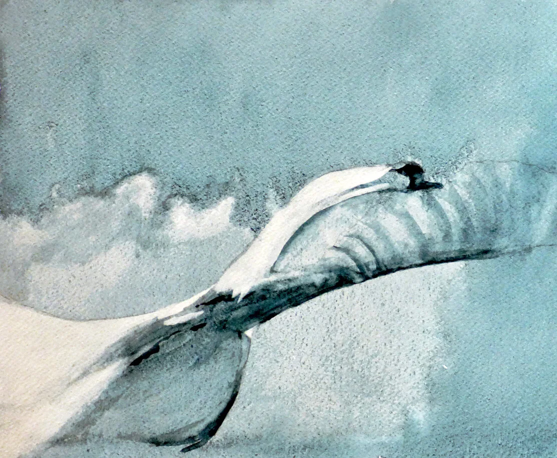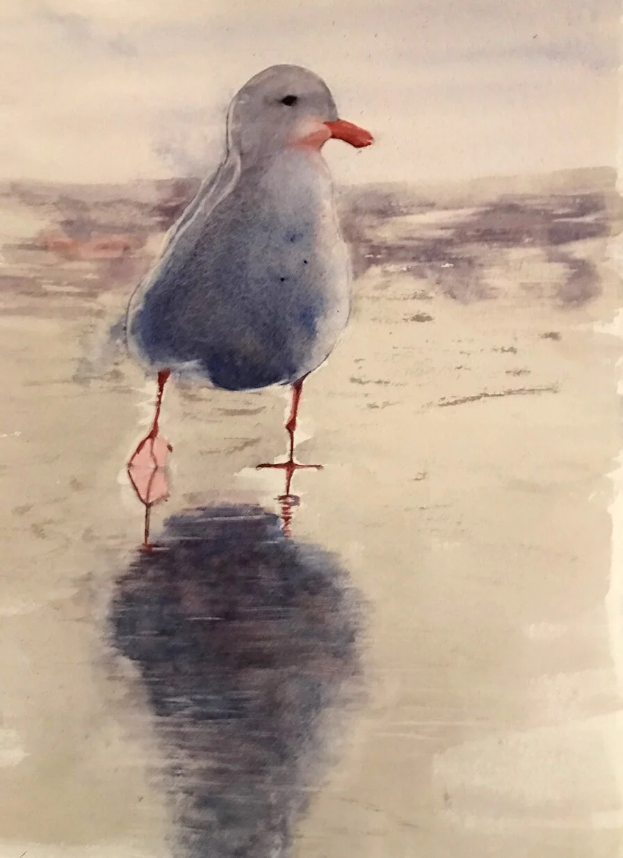 “Painting in watercolor is one of my passions,” she says, “the other is golf. Both are relaxing, meditative, challenging and require focus. Creating an image that captures someone’s attention and helps one to pause, breathe, relax, or smile is the challenge and the reward.